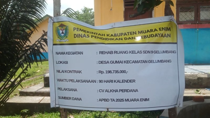 Muara Enim – Proyek pembangunan di SDN 9 Gelumbang yang Berlokasi di Desa Gumai, Kecamatan Gelumbang Kabupaten Muara Enim, tahun anggaran 2025 yang direalisasikan melalui Dinas pendidikan Kabupaten Muara Enim, tak hanya oleh para guru, tapi juga para wali murid.