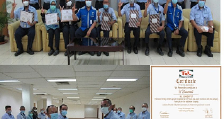 Seremoni penyerahan simbolis penghargaan yang dihadiri oleh jajaran direksi/Management PT.TEL serta perwakilan Pengurus Serikat Pekerja SPPT.TEL dan beberapa perwakilan Pekerja lintas jabatan dari Operator level sampai Manager level yang mendapatkan penghargaan tersebut.